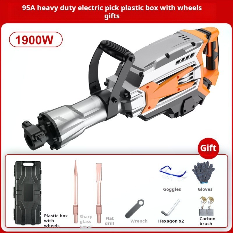Bu elektrikli çekiç, endüstri lideri olan 1900W yüksek güçlü bir motoru kullanır.Sert beton duvarlara karşı mı, veya yoğun asfalt kaldırım ve taş, hızlı ve verimli bir şekilde yıkım işlemleri tamamlanabilir.